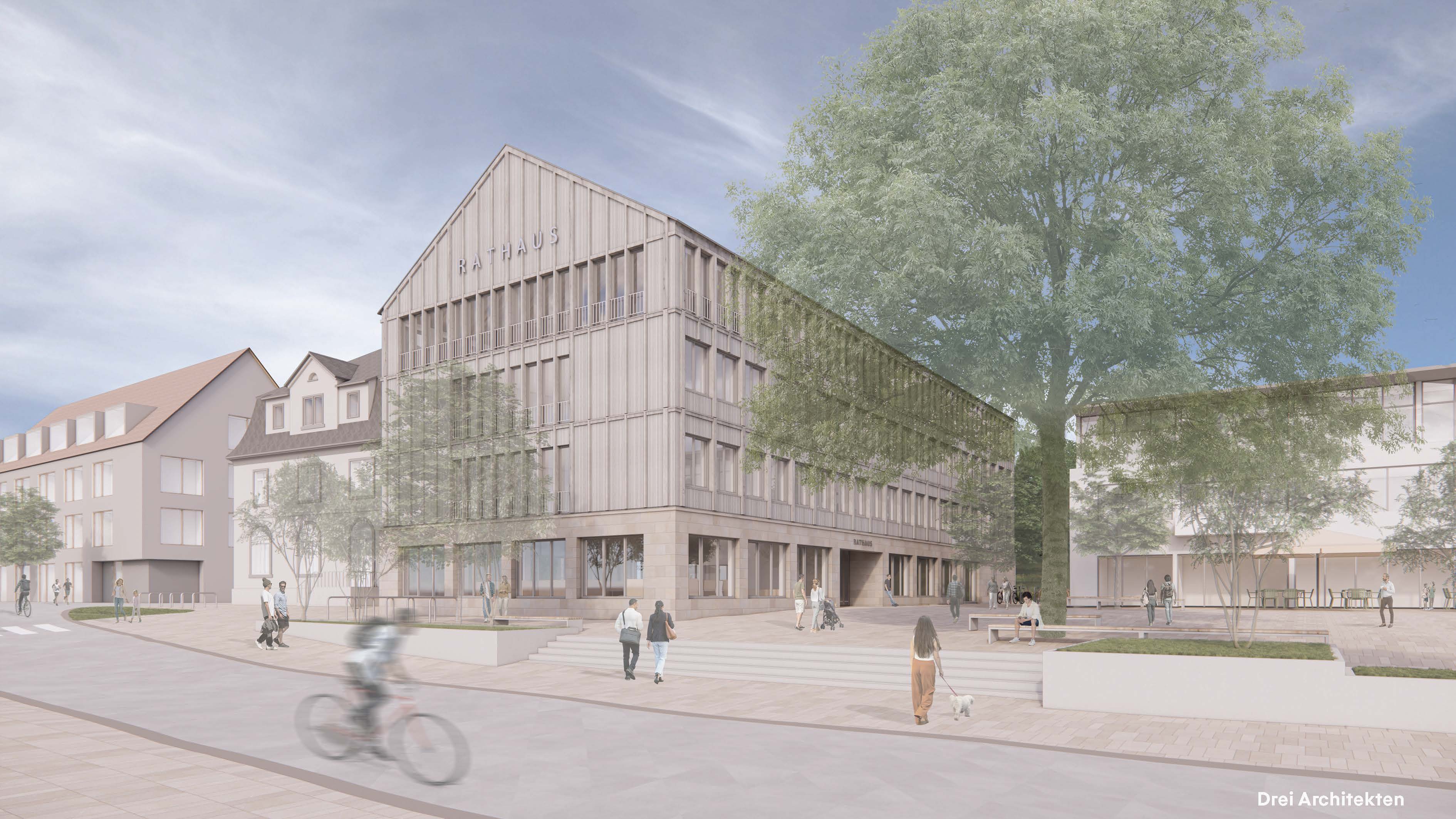 Nach einer umfassenden Kostenuntersuchung und einer Machbarkeitsstudie bei der verschiedene Varianten und Rathausstandorte untersucht wurden, hat der Gemeinderat beschlossen, den ortsbildprägenden Altbau zu erhalten, den Anbau aus den 1980er Jahren und den Zwischenbau abzubrechen und am bisherigen Standort einen zeitgemäßen Rathausneubau zu errichten. Damit soll ein funktionales, barrierefreies und zukunftsfähiges Verwaltungsgebäude entstehen, das den Bedürfnissen von Bürgerschaft, Mitarbeiterinnen und Mitarbeitern sowie den gemeinderätlichen Gremien gerecht wird.